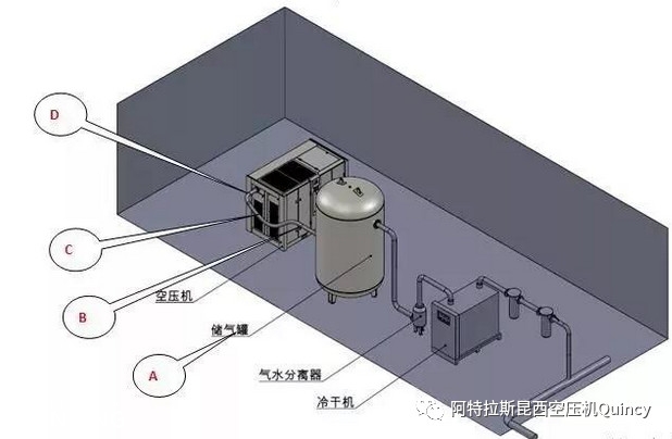 A)配套設(shè)備安裝順序要求如圖,“空壓機(jī)→儲(chǔ)氣罐→氣水分離器→冷干機(jī)”的安裝順序能有效利用氣體流動(dòng)特性提前排出水分降低冷干機(jī)負(fù)荷。